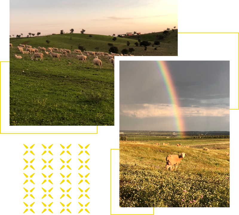 As Courelas do Outeiro são uma propriedade agrícola situada na Estrada Nacional 256 km, n.º14 que faz a ligação entre Évora e Reguengos de Monsaraz, detentores de um espaço calmo com sintonia perfeita entre a natureza e um magnífico nascer e pôr do sol, com assimetrias na cor, relevo e texturas do terreno, proporcionadas pelas diferentes atividades agrícolas como o pastoreio do gado, as culturas arvenses e a área de montado de azinho. Numa região de "beleza única" onde predominam as vinhas os olivais e o montado, não é de surpreender que aqui encontremos pastagens naturais de excelência que nos garantem a produção do melhor borrego biológico a nível nacional em área de reserva Agrícola e Ecológica Nacional.