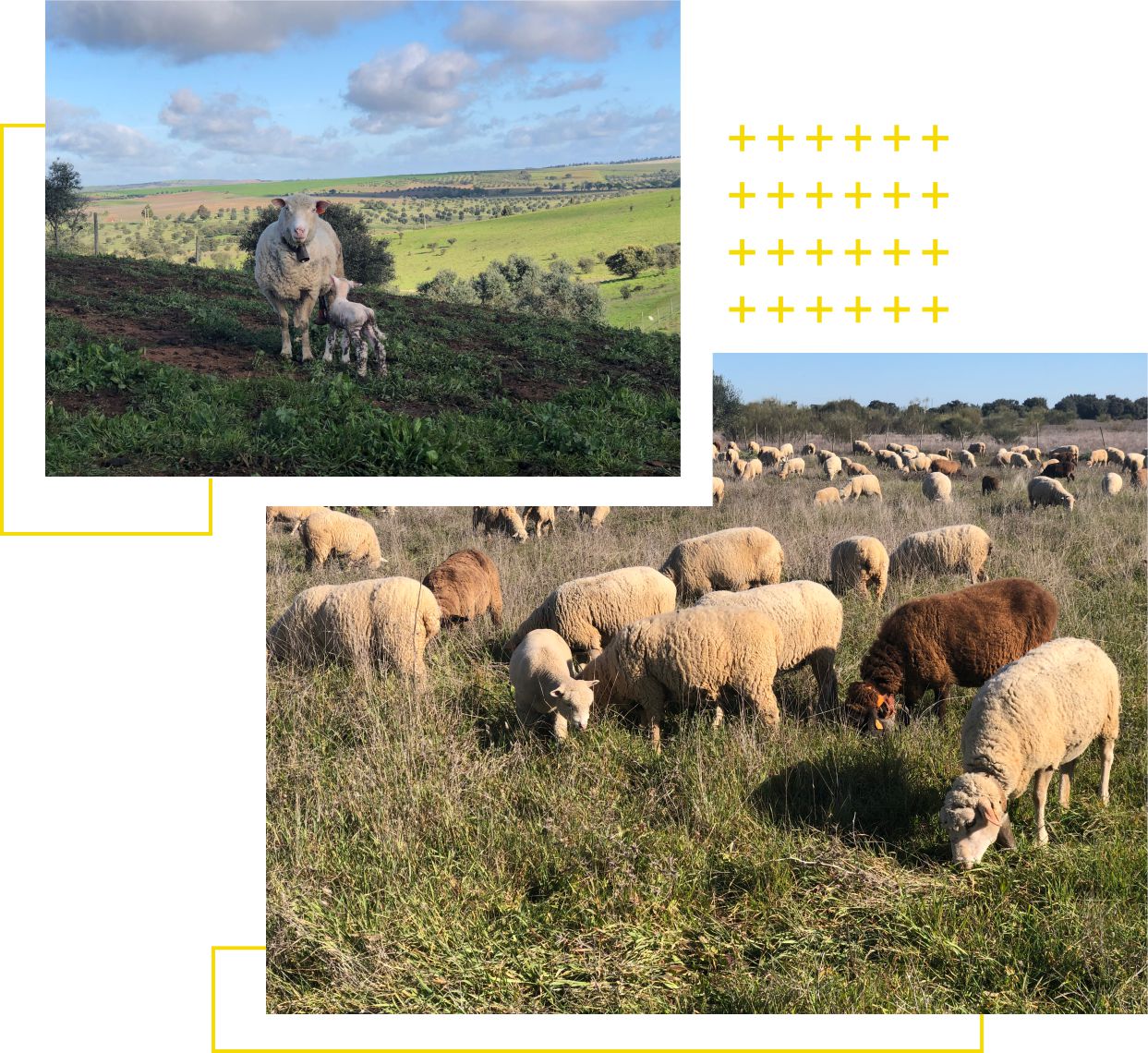 O efetivo é composto por 270 fêmeas reprodutoras e 14 carneiros, animais da raça autóctone Merina, a escolha da raça deve-se às suas características produtivas altamente favoráveis para a produção de carne e lã de qualidade superior.